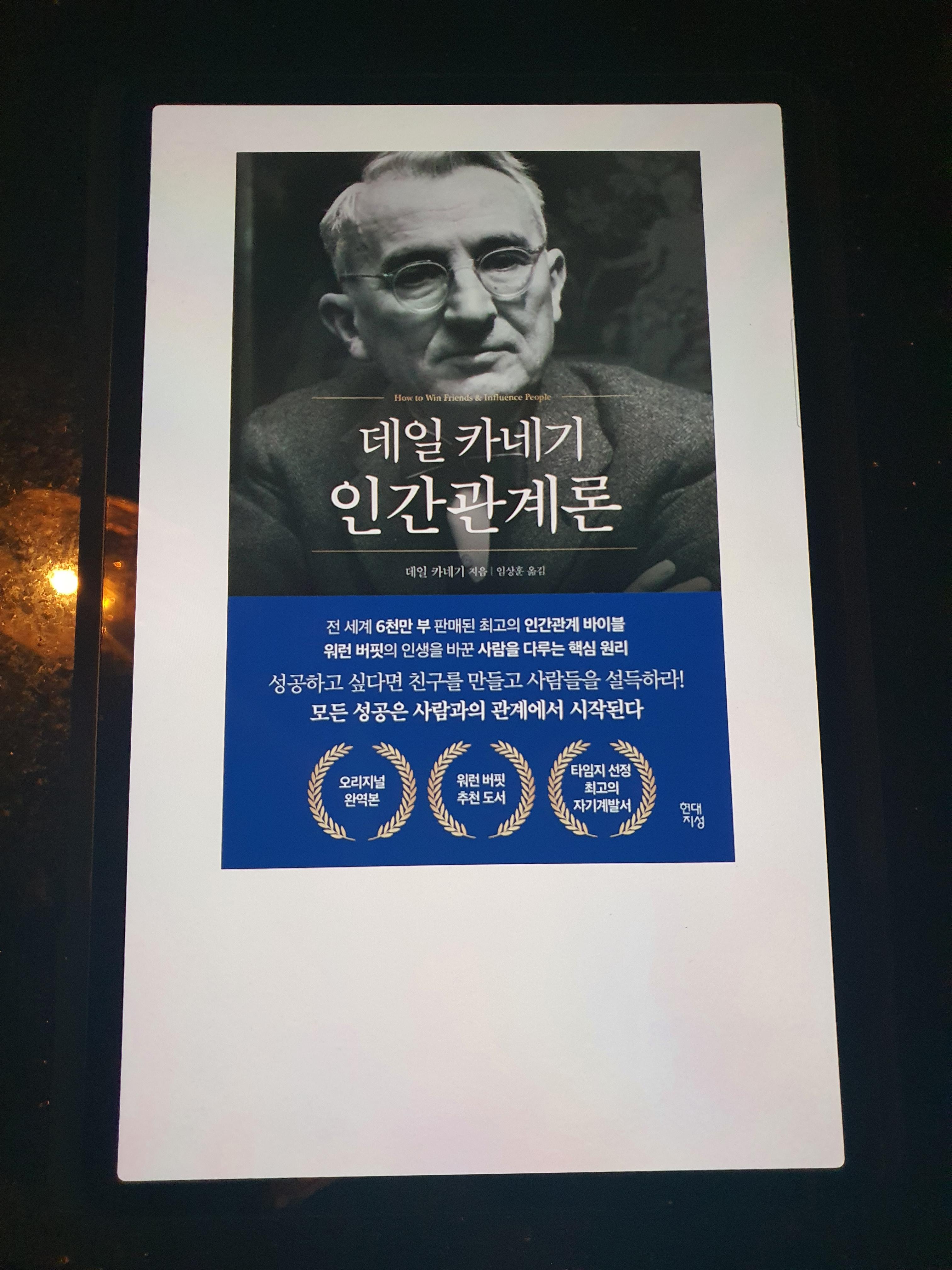 아는 동생이 최근에 읽었다고 해서 오랜만에 읽어보고 싶은 차에 갤탭 사고 밀리의 서재 무료로 이용을 할 수 있어서 첫 태블릿 독서는 인간관계론.